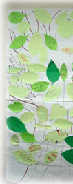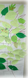 そして他の部門を覚えこととしては、小学生キャンプと中学生キャンプが行ってきた模紙に描かれた大きな木の絵の上に、緑の紙を葉っぱの形に切って、このキャンプに対する思いを書き、閉会礼拝の時に貼り付けました。